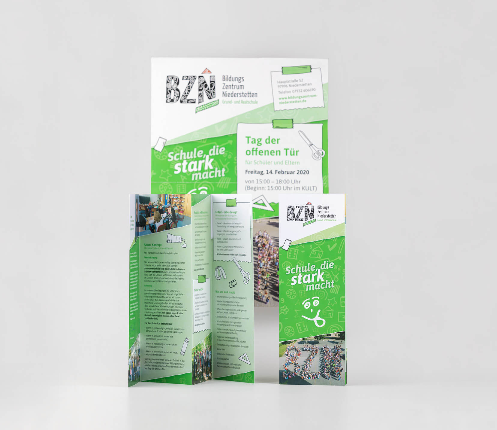 Ein Erscheinungsbild für eine Schule zu entwickeln bedeutet, ähnlich wie bei anderen öffentlichen Einrichtungen, einen Stil zu finden, der die Akzeptanz vieler heterogener Zielgruppen gewinnt. Die Kernzielgruppe jedoch sind und bleiben die Schüler selbst. Beim BZN haben wir einen Weg gefunden, diese selbst zu einem sinnvollen Grad in die Gestaltung einzubeziehen.