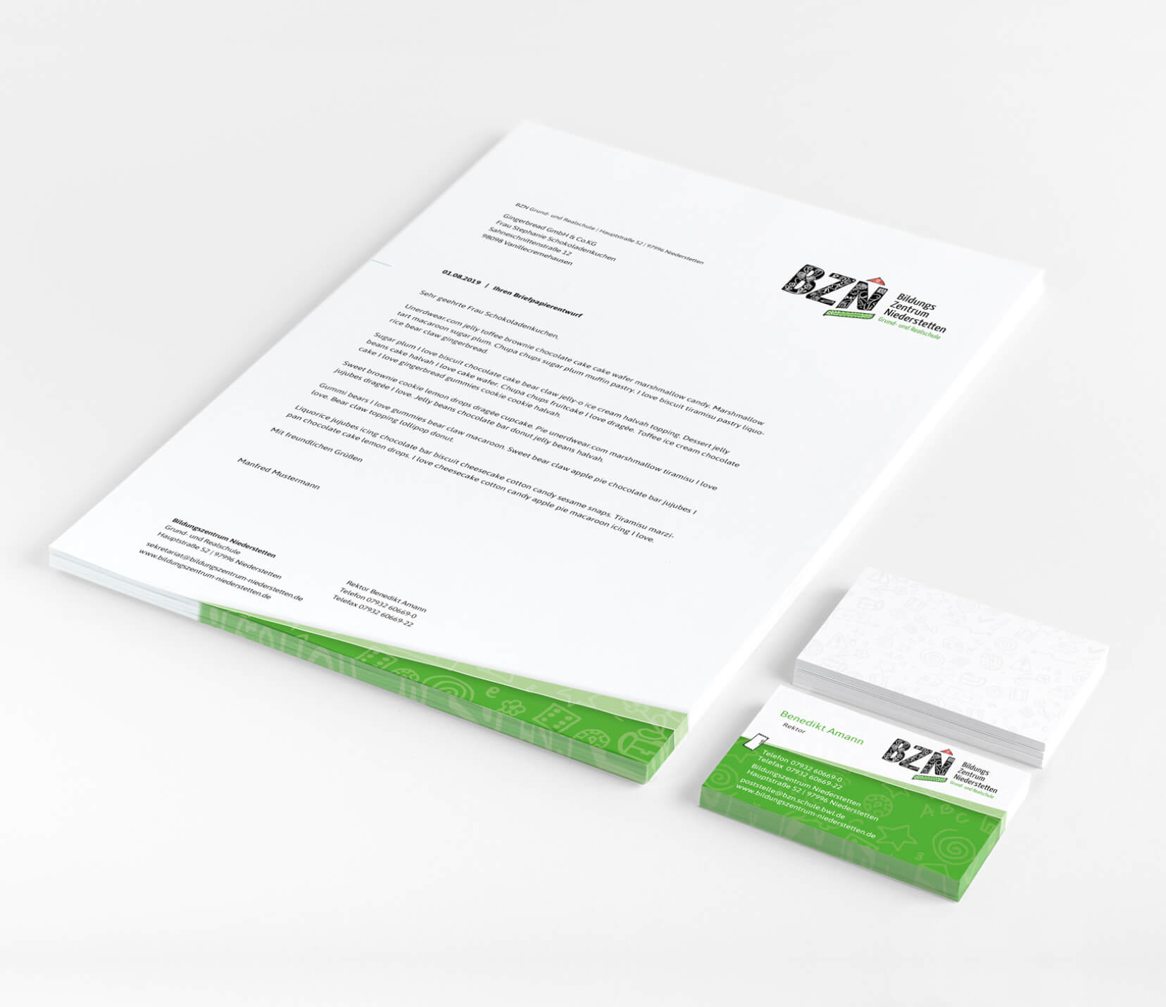 In einem Wettbewerb haben wir die Schüler des BZN dazu animiert, eigene Ideen für das Muster des neuen Schullogos zu entwerfen. Um das Lehrerkollegium möglichst wenig zu strapazieren, entwickelten wir selbsterklärende Unterlagen mit allen relevanten Informationen und Vorgaben für die Schüler. Effizient und stressfrei konnte die Jury aus circa 100 Einsendungen die Besten ermitteln und prämieren. Und so bekam das BZN seine neues, wandelbares Logo!