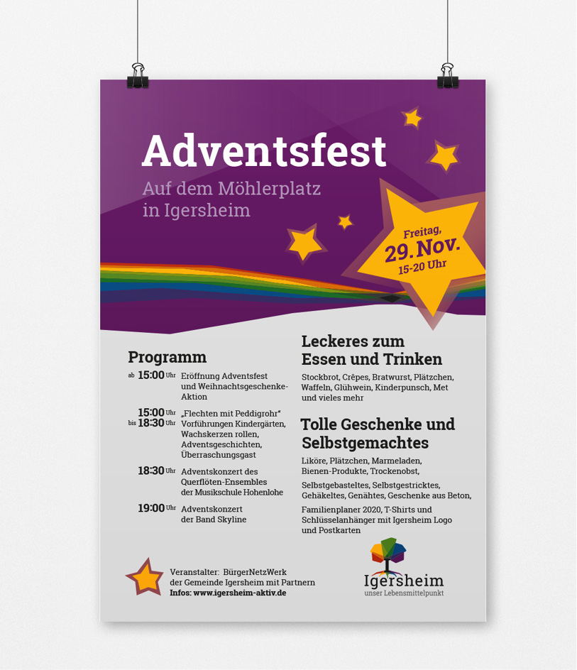 BÜRGERENGAGEMENT schreibt man in Igersheim groß. In unzähligen Stunden haben sich verantwortungsvolle Bürger hier leidenschaftlich und selbstlos zum Wohle aller eingebracht. Gemeinsam wurde ein Leitbild entwickelt, das sich nun im neuen Gesicht der Gemeinde widerspiegelt. Das Motto der Gemeinde "Unser Lebensmittelpunkt" findet sein Sinnbild in der Symbolik eines Baums. Fest verwurzelt und geschmückt mit den codierten Farben der definierten Handlungsfelder der Gemeinde.